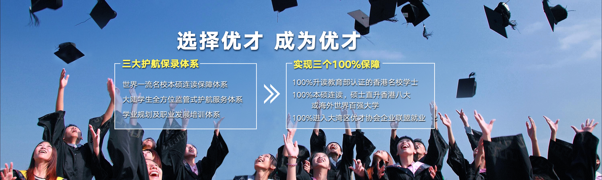 【優才聯合培養精英計劃】依靠九年完善成熟的“五大體系”,為學生實現四個100%升學和就業保障:一是副學士申請100%入讀香港六大名校,二是學士100%升讀教育部認證的香港15所本科大學或QS世界排名前200大學,三是碩士100%升讀香港八大名校或QS世界排名前100大學,四是碩士畢業100%大灣區優才協會聯盟企業就業。優才連續九年零差評、零投訴...